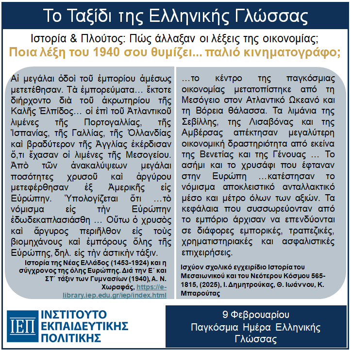 Σήμερα το Ταξίδι της Ελληνικής Γλώσσας περνά από την Ιστορία στην Οικονομία