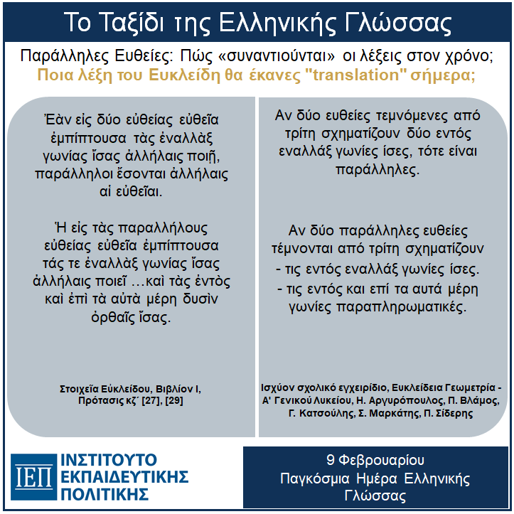 Συγκρίνουμε πώς περιγράφεται η ίδια γεωμετρική σχέση (οι παράλληλες ευθείες) σε κείμενα διαφορετικών εποχών.